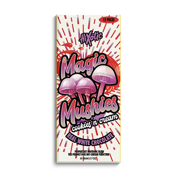 Magic Mushies Chocolate Bar by Hixotic offers a rich, indulgent chocolate experience infused with a powerful nootropic mushroom blend designed to support mental clarity, mood balance, and calm energy. With 50g of delicious milk chocolate and natural mushroom extracts, this bar is more than just a treat—it’s a functional edible made for people who want to feel their best without sacrificing flavor.