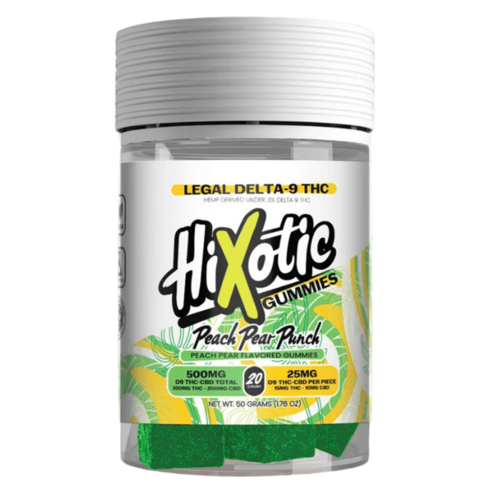 Peach Pearl Punch Gummies by Hixotic are a mouthwatering and potent edible designed to deliver tropical bliss with each piece. Infused with a total of 500mg of Delta 9 THC per bag, these gummies combine bold peach and tropical punch flavors with a clean, balanced high. With 10 gummies per pack, each dosed at 50mg, these treats are ideal for experienced users looking for a flavorful and effective edible option.